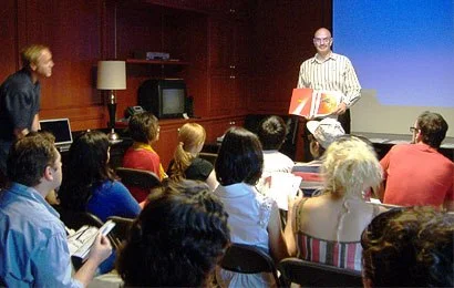 Please see links below for current upcoming events and memorable photos from past events.Karl discussing some finer points of printing with Detroit AIGA members.